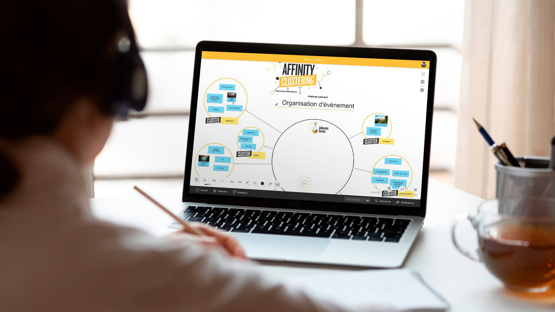Comment ? C’est très simple, c’est une question d’affinité ! Votre première étape consiste à travailler en équipe et à générer un maximum d’idées sur votre sujet. Puis, vous les regroupez par « cluster », c’est-à-dire des groupes d’affinité ou de ressemblance. Au fur et à mesure, vous voyez les grands axes de réflexion de l’équipe se dessiner. Que vous ayez l’habitude des workshops de design thinking ou non, cet atelier très simple et ludique est un indispensable à connaître pour faire un brainstorm efficace, y compris à distance.