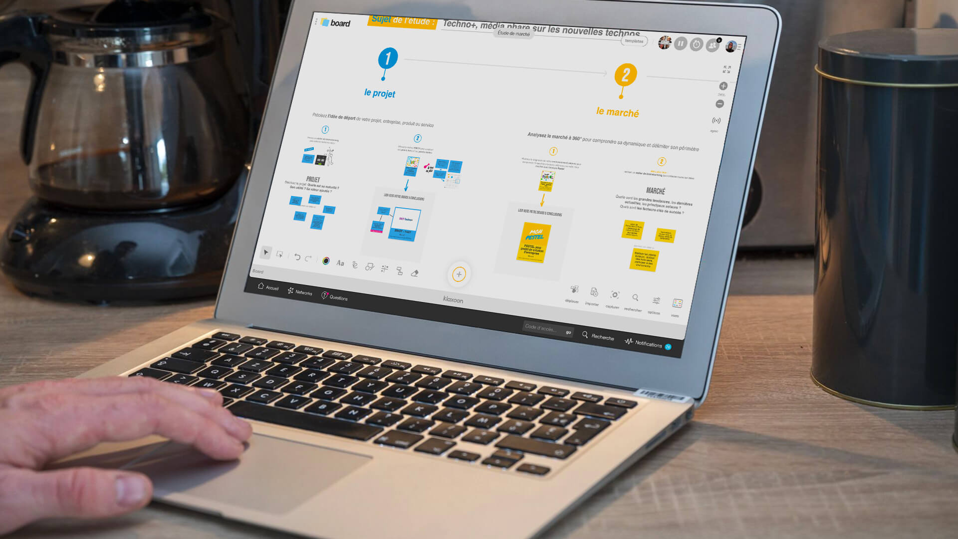 Vous avez une idée révolutionnaire et souhaitez lancer votre projet ? Il est conseillé de faire une étude de marché. Le template Étude de marché vous donne les clés pour bien vous préparer. Ces clés, ce sont des méthodes et analyses incontournables pour connaître la cible, l’environnement et la concurrence. Ce template reprend d’autres templates Klaxoon, adaptés à chaque étape de l’analyse et qui vous permettront de réaliser, en équipe, une étude de marché approfondie et qualitative.