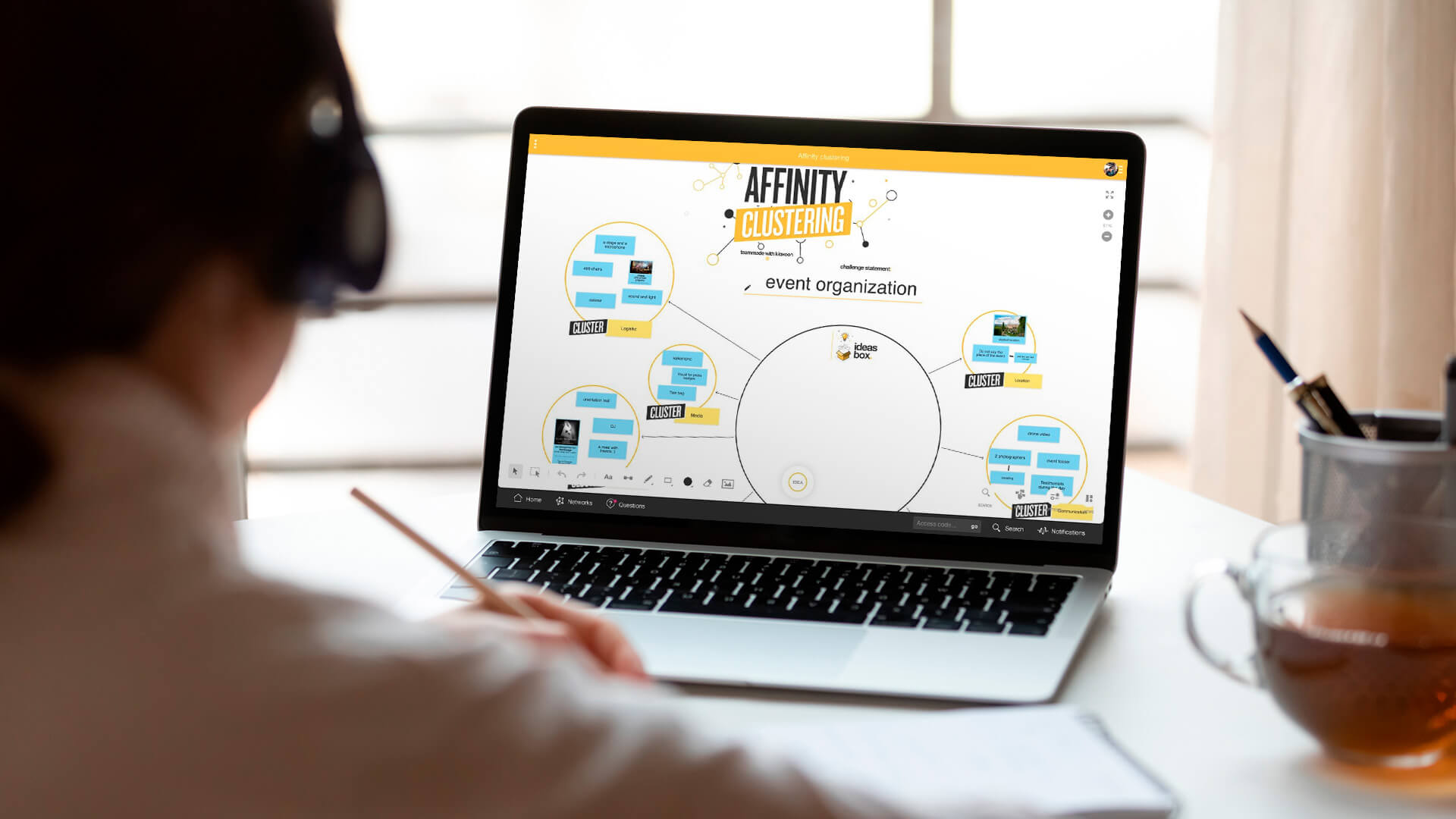 How? It’s quite simple, it's all about affinity! The first step involves some teamwork to generate as many relevant ideas as possible. Then, you group your fresh ideas into clusters regarding their similarity. This way, you will gradually see the team's main avenues of thought take shape. Whether you're familiar with design thinking workshops or not, this very simple and fun template is essential for effective brainstorming, even remotely.