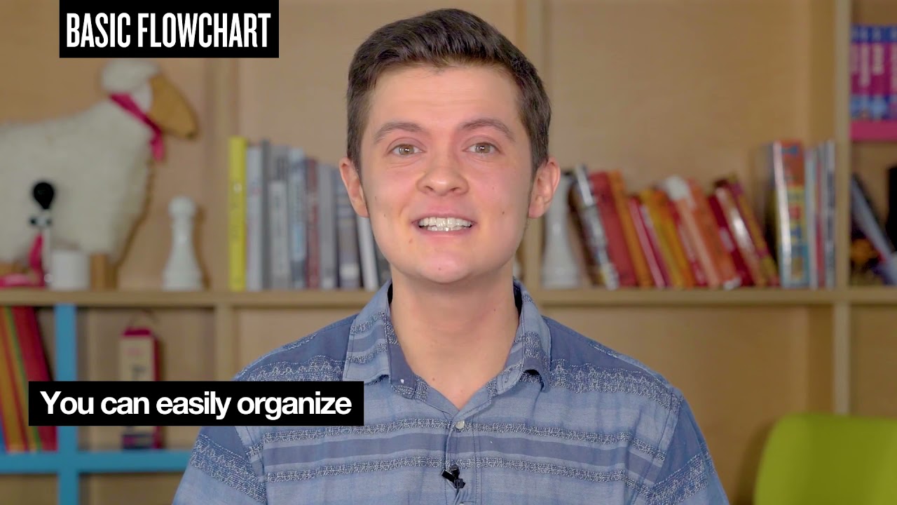 The Basic Flowchart template uses the codes of the method used in engineering and development to visually represent processes.
