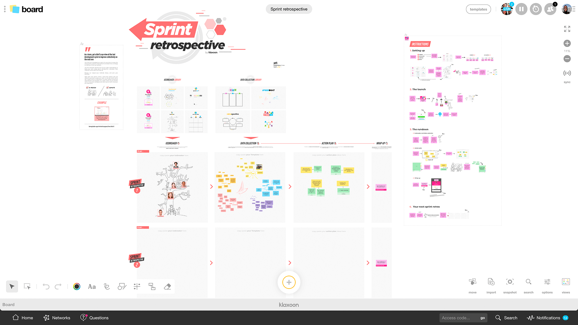 Klaxoon templates are based on tried and tested visual management methods. Below are two examples of ready-to-use templates for your sprint retro, with immediate visual results.