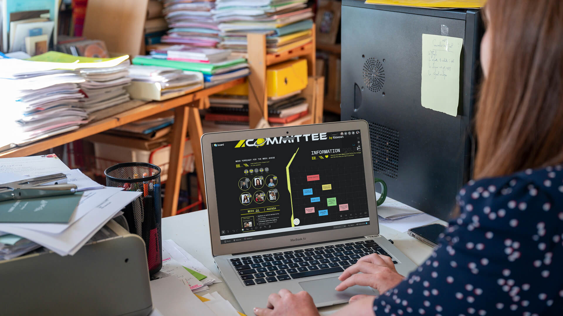 So, how does a Copil steering committee come to agreement? Easy! Before the meeting starts, everyone posts his or her ideas, questions, information and suggested decisions on an online whiteboard. Then, during the meeting, the participants organize and manage proceedings, discuss the issues at hand, and finally vote on them. They thus take their decisions based on what was shared, and arrive at an action plan. This is where the flexibility and user-friendliness of Klaxoon’s Copil template time and again proves its worth!