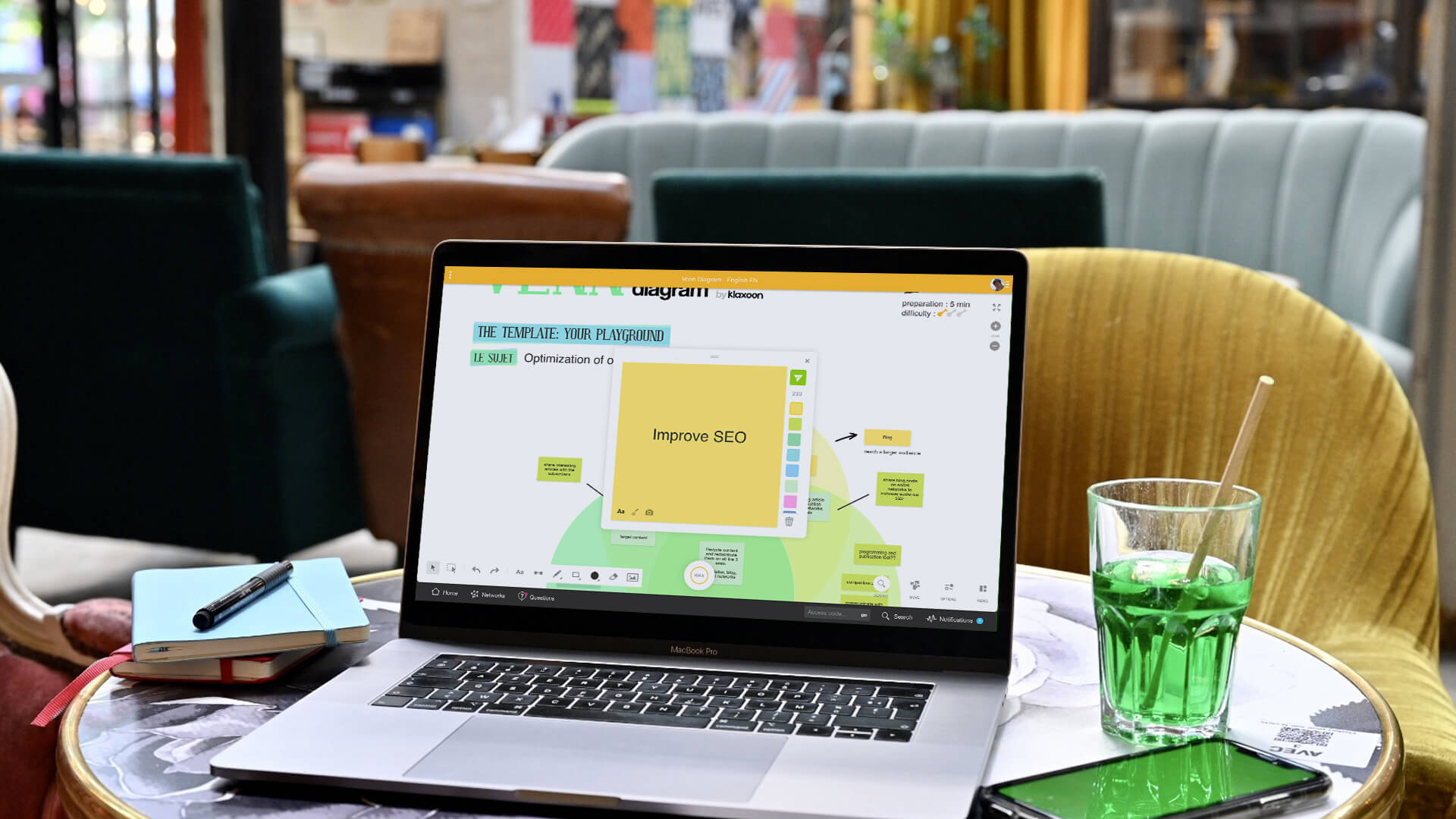 Creating a Venn Diagram on Klaxoon’s infinitely scalable whiteboard has numerous advantages. It makes it possible to organize information visually to see the existing relationships between various elements, such as similarities and differences.