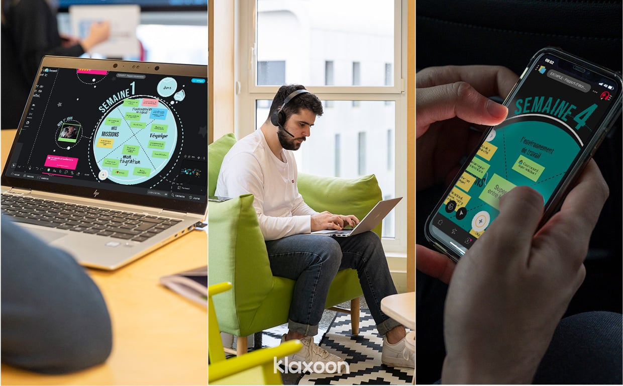 Faites gratuitement vos premiers pas vers un travail ultra-efficace, grâce à la plateforme visuelle Klaxoon.