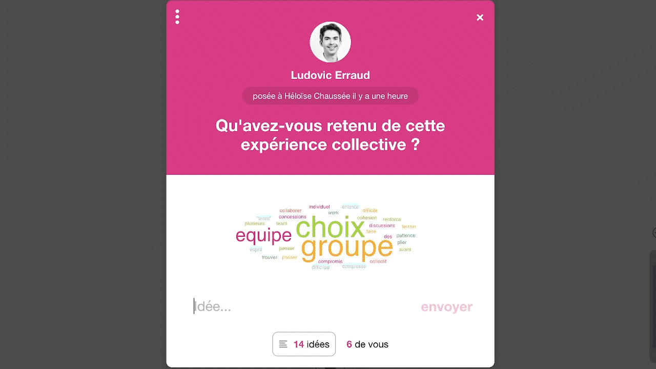 L'animateur recueille le feedback des participants instantanément, grâce à une Question Storm