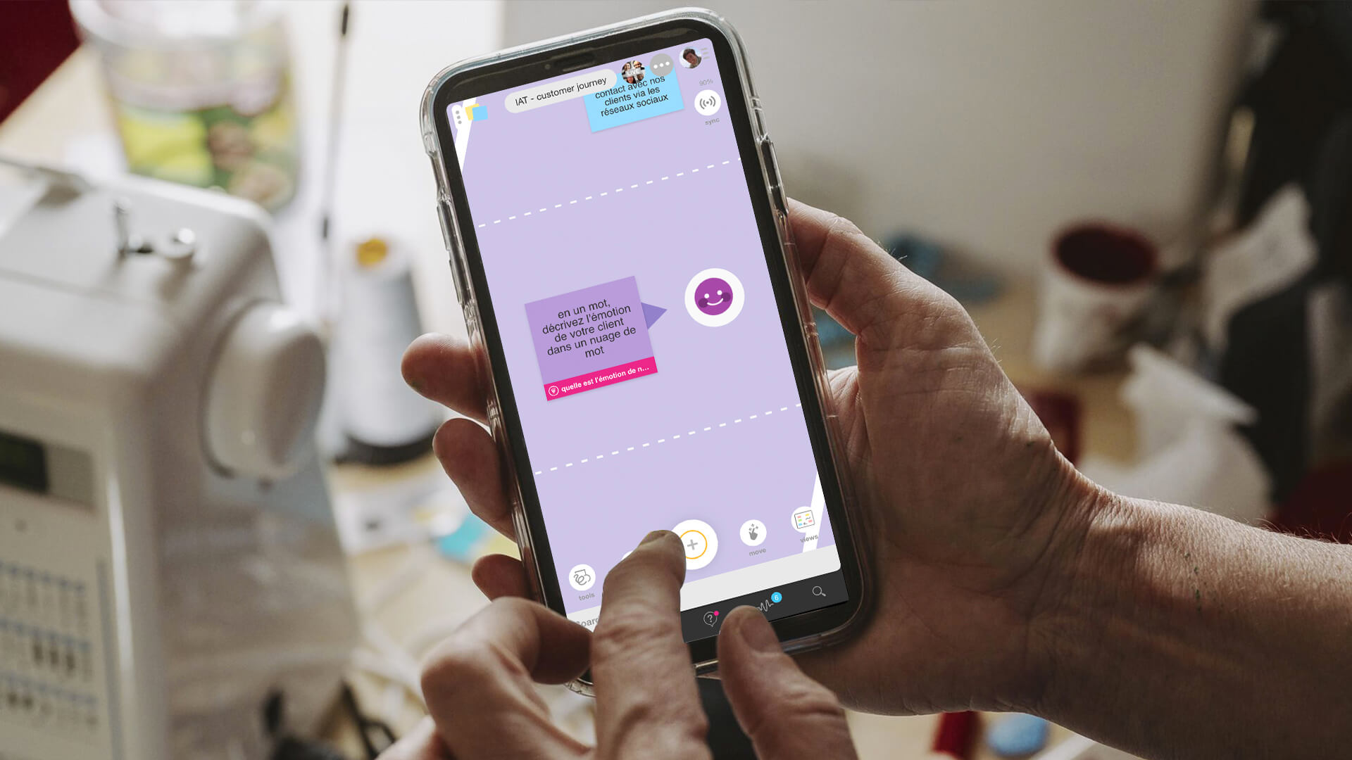 Invitez ensuite les participants connectés à prendre 5 minutes de réflexion pour envoyer des idées à chaque étape du parcours client (découverte, considération, achat, service, fidélisation). Envoyez des idées pour l’expérience client et aidez-vous des icônes pour renseigner les points de contact. Pour mieux décrire les émotions et ressentis de vos clients, générez un nuage de mots sous une idée grâce à l’outil Question et invitez les participants à ajouter leur contribution ou à voter pour les idées des autres. Vous retiendrez à la fin le mot le plus liké ou cité, ou le remplacerez par une émoticône représentative ; un vrai travail d’équipe !