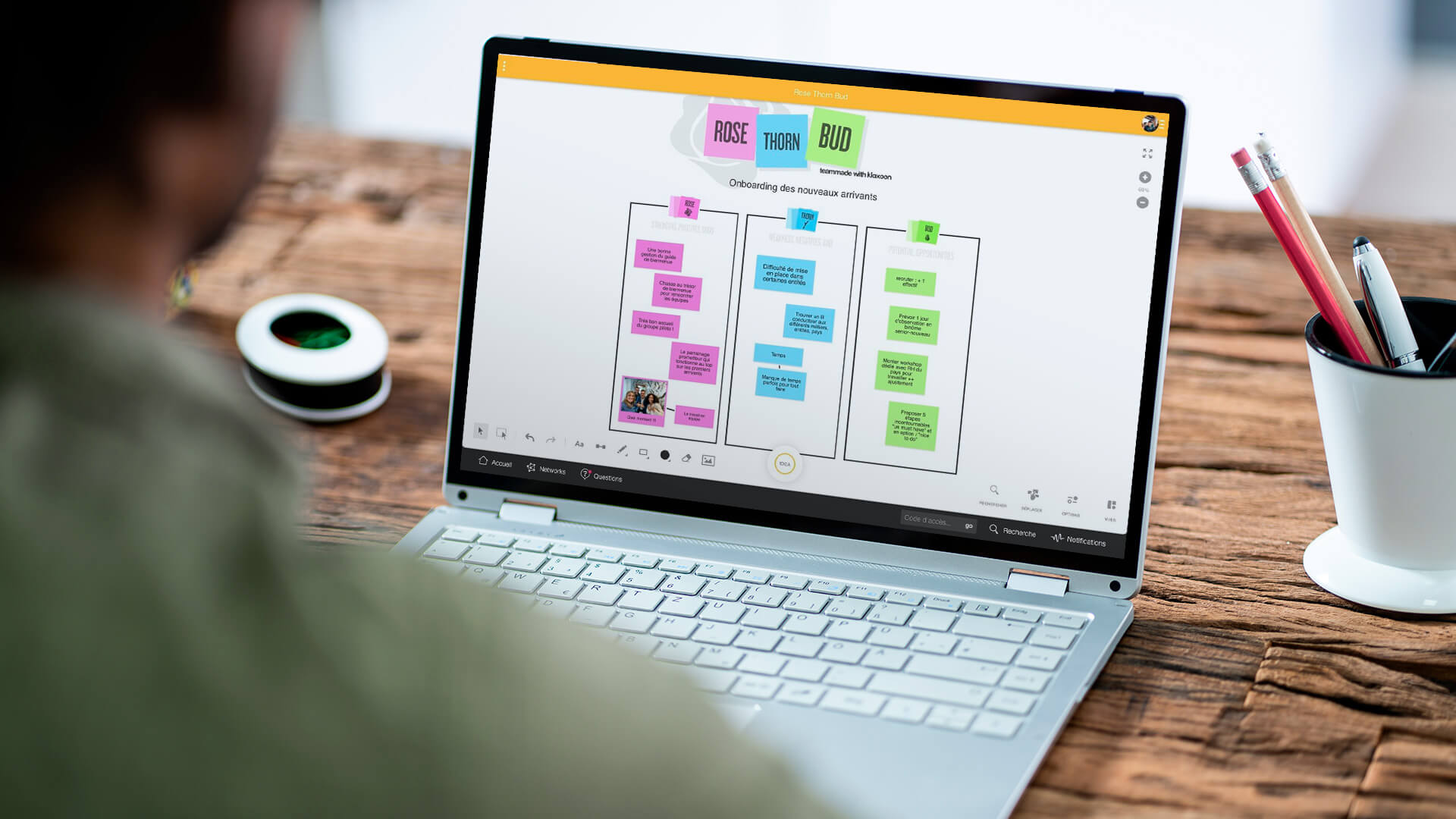 Avec le Template Rose, Thorn, Bud, lancez avec votre équipe une réflexion sur vos succès, vos défis et vos opportunités à venir. Grâce à cette méthode de design thinking, vous saurez analyser une situation en la décomposant de manière rapide et efficace. En un seul workshop rapide, dévoilez ensemble tout ce qui fonctionne, les points bloquants, et tout ce qu’il reste à explorer dans vos projets !