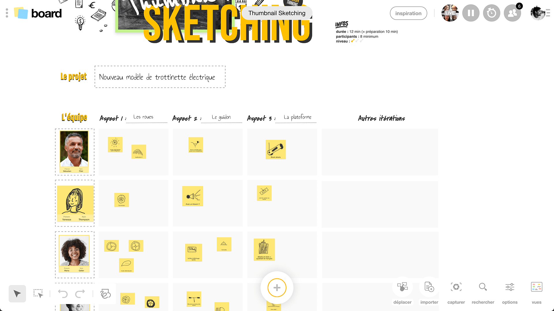 Ensuite, invitez le groupe à discuter des croquis. Choisissez ensemble les concepts à affiner par des croquis supplémentaires. Alors, prêts à dessiner ?