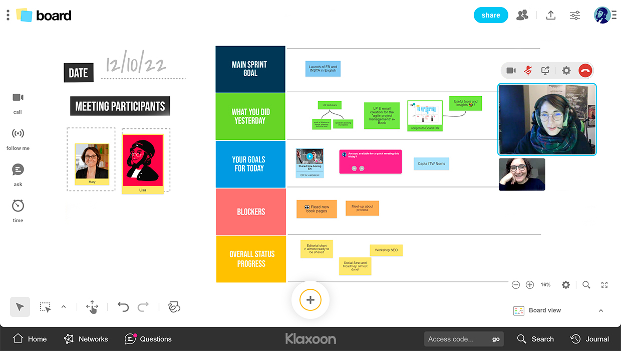 Faites gratuitement vos premiers pas vers un travail ultra-efficace, grâce à la plateforme visuelle Klaxoon.